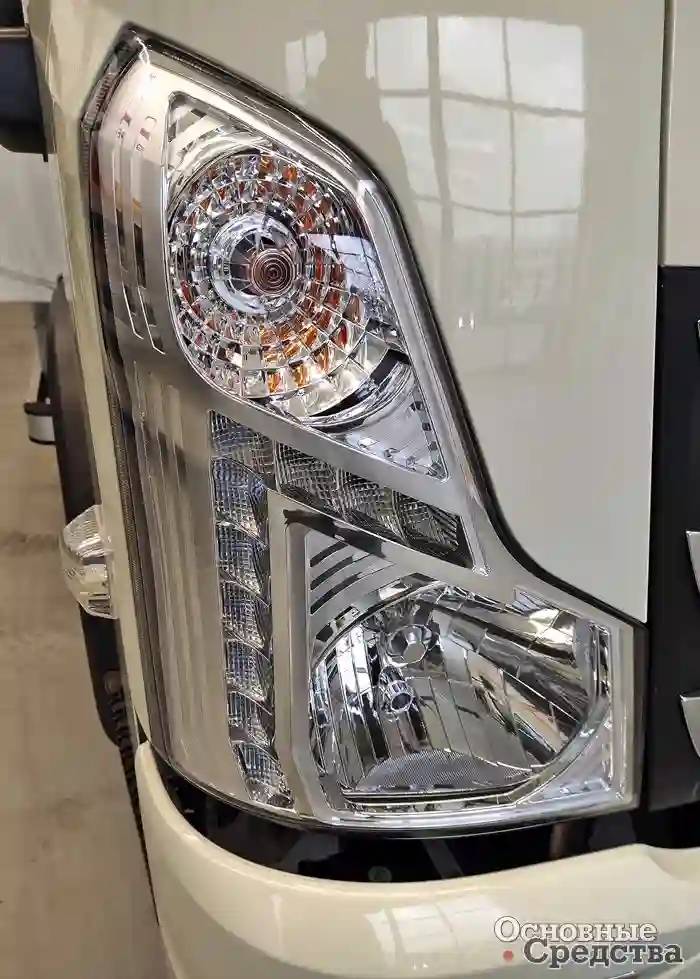 Кабина – типичный представитель своего класса с некоторым восточным колоритом: вертикальные блок-фары, крупный рисунок радиаторной решетки с размашистым логотипом. Внутренний интерьер ближе к европейским ценостям – никаких аляповатых вставок под дерево, дизайн сдержанный, функциональный, материалы гармонично сочетаются по фактуре и цвету.
